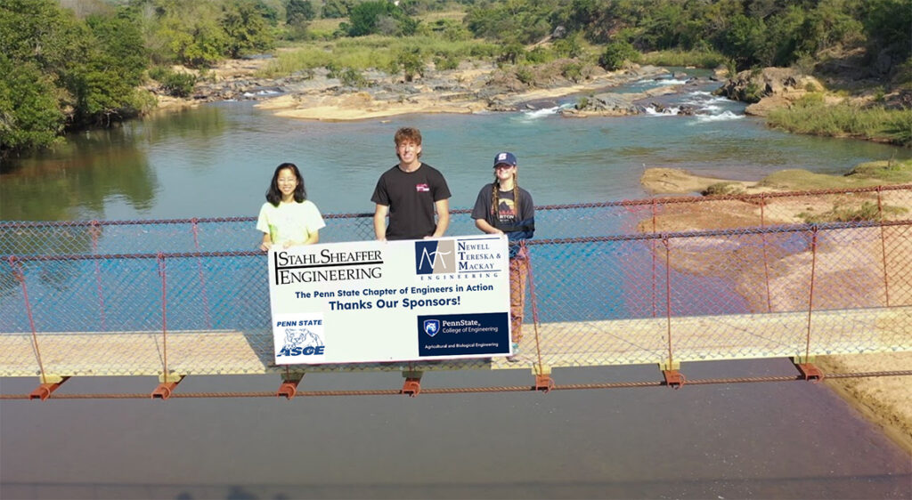 This past summer, the chapter was able to send three student travelers to Eswatini to collaborate with Colorado Boulder and the University of Virginia to construct an 87-meter pedestrian footbridge. Because of the footbridge, the community of Masongwane in Eswatini can now safely cross the dangerous floodwaters of the Masongwane River.